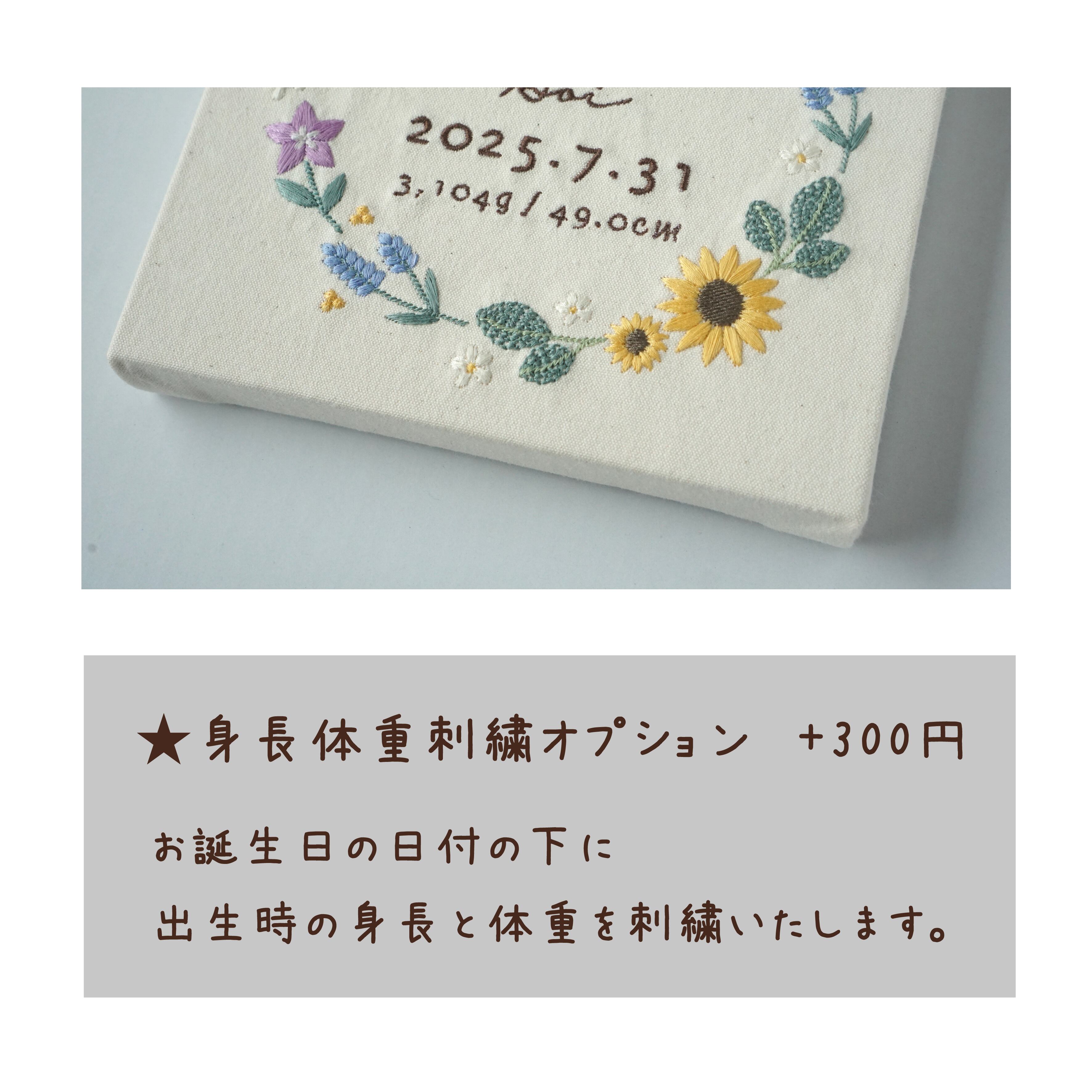 ふっくらとあたたかみのある刺繍で彩る命名パネルです。