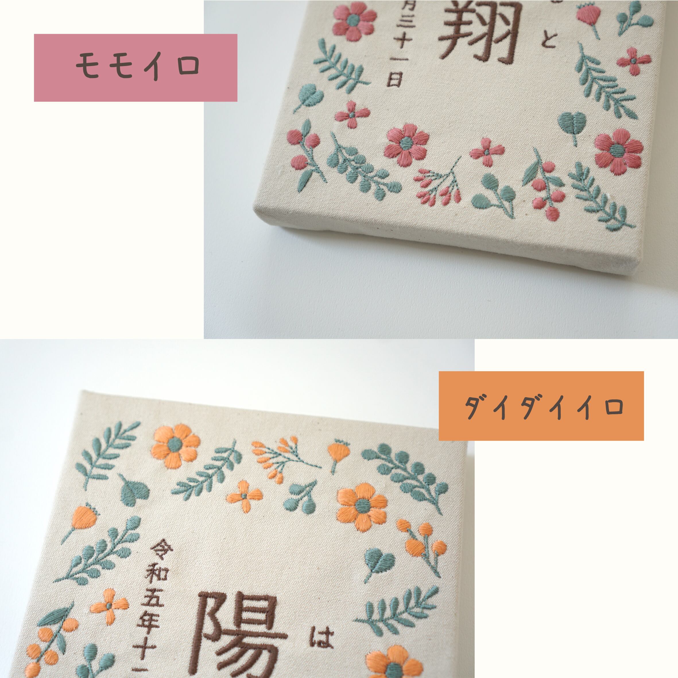 ふっくらとあたたかみのある刺繍で彩る命名パネルです。