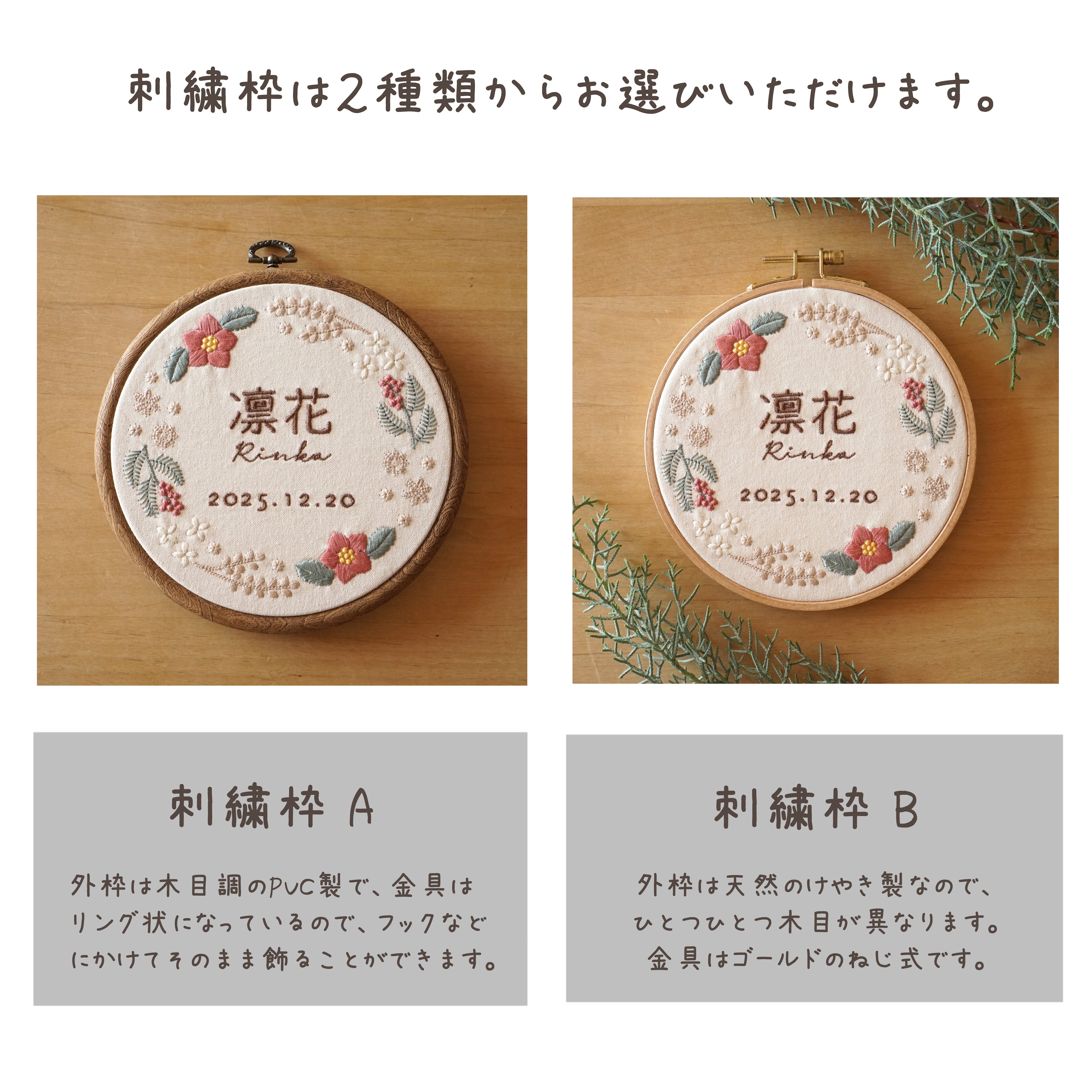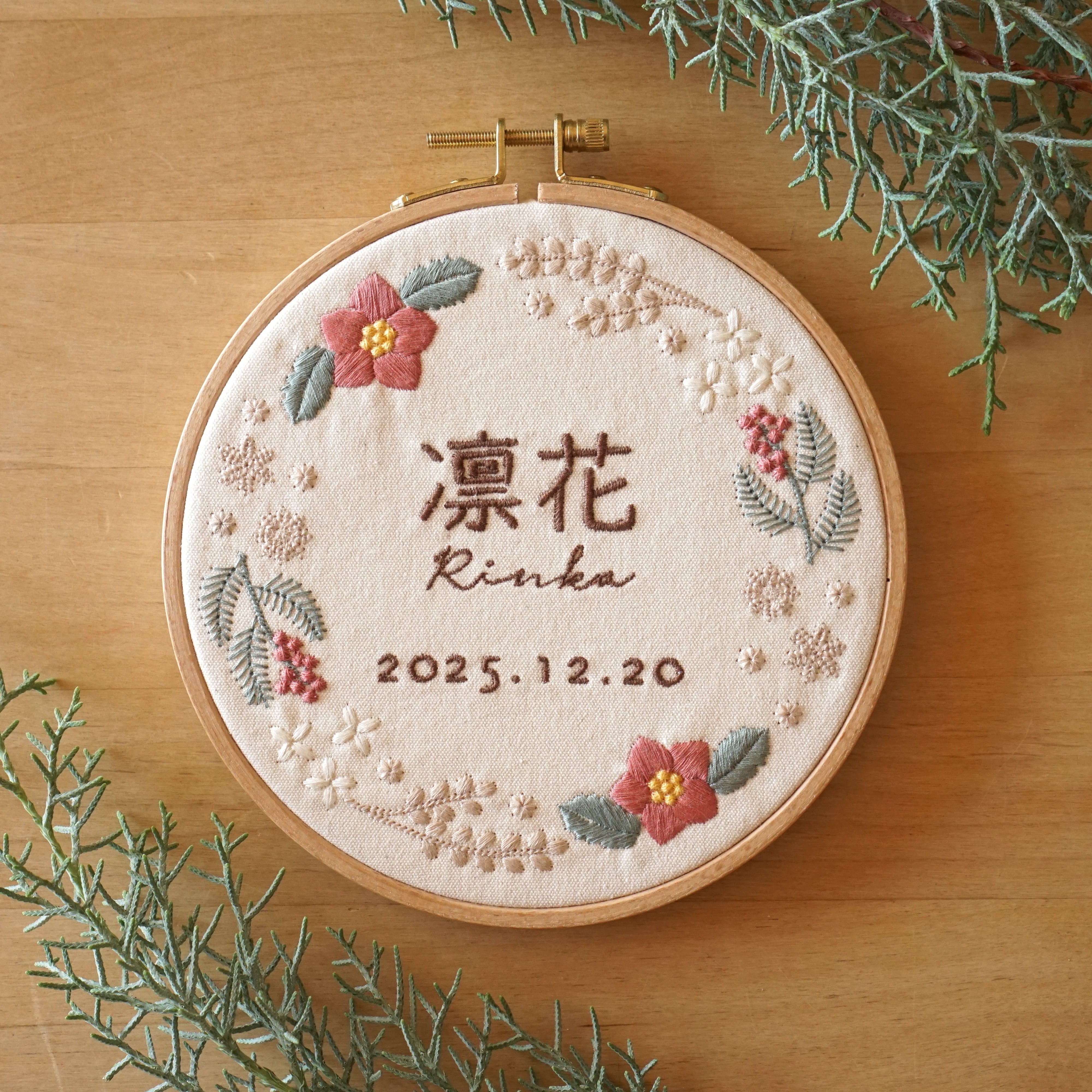 ふっくらとあたたかみのある刺繍で彩る命名書です。