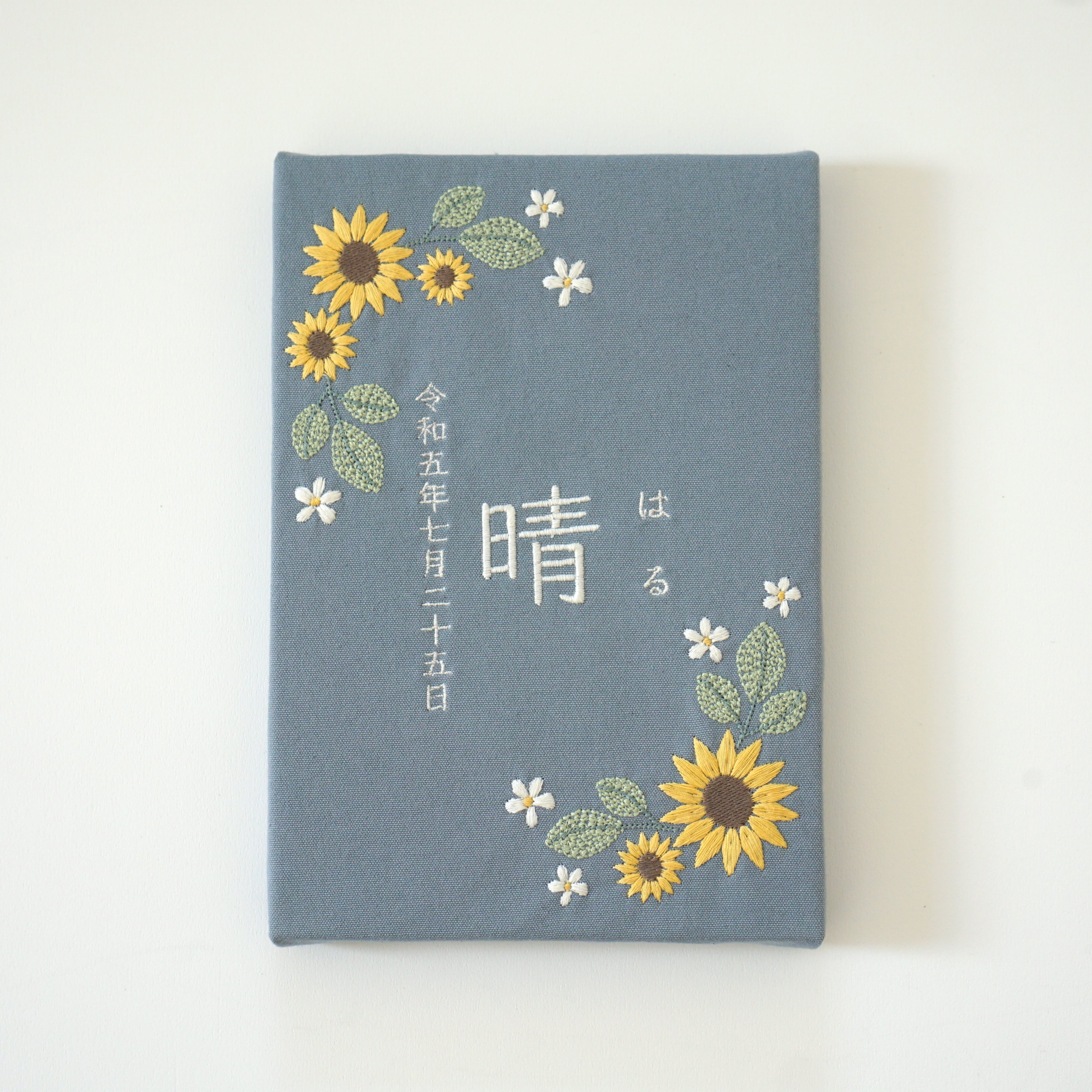 お子さんのお名前をふっくらとあたたかみのある刺繍で彩る命名パネルです。