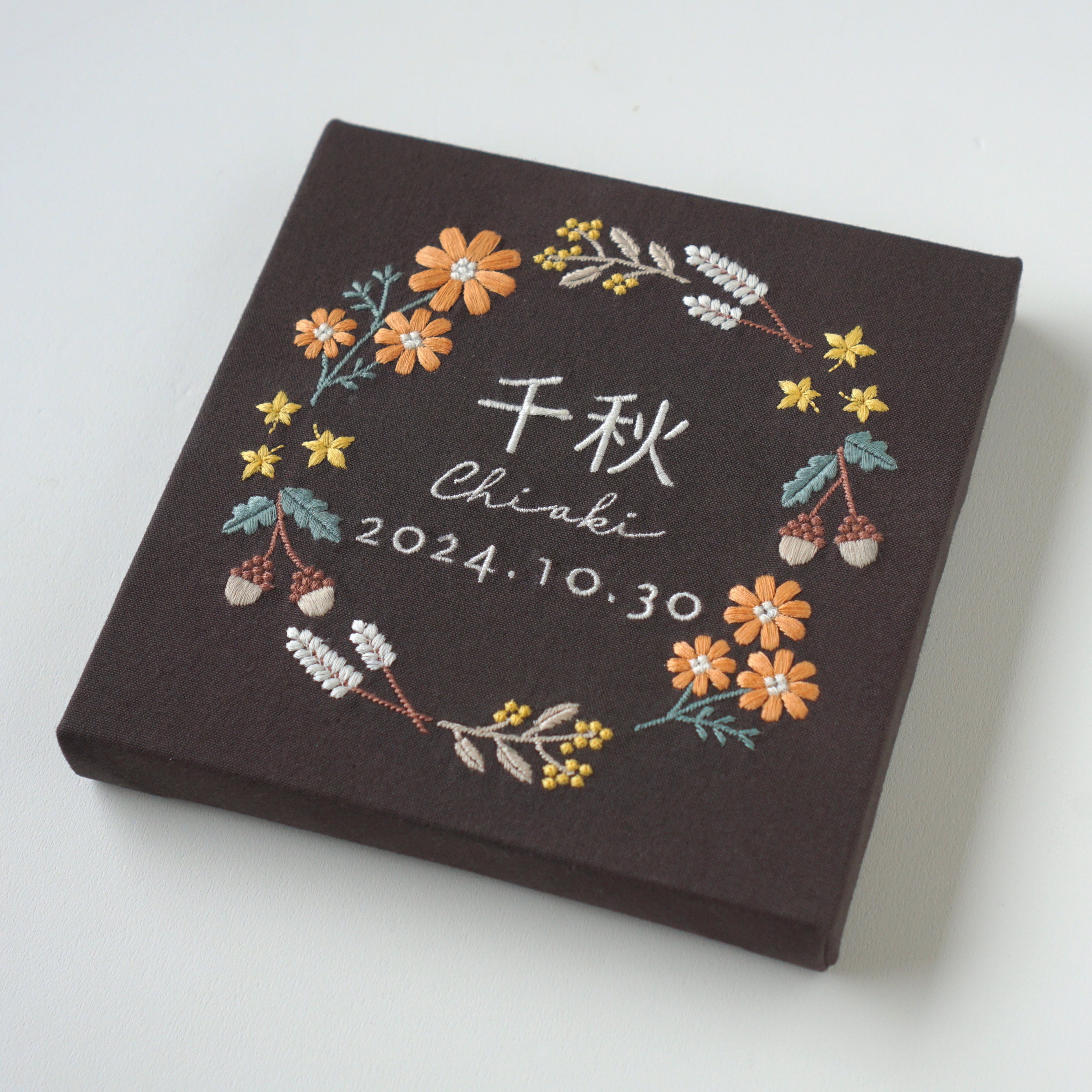 お子さんのお名前をふっくらとあたたかみのある刺繍で彩る命名パネルです。